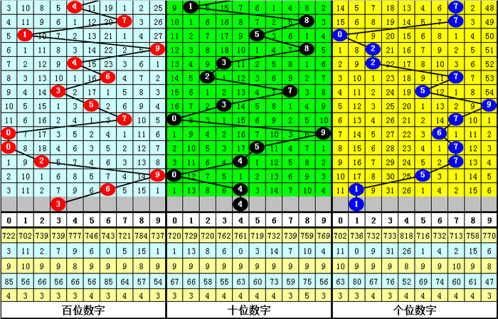 个位:质数近期弘扬活跃,面前贯穿走冷了4期,本期瞻望质数贯穿开出;另外,在最近20期开奖中,个位以1路和2路号码弘扬活跃,0路号码走势相对较冷,本期看好0路号码连续走冷,参考号码1。